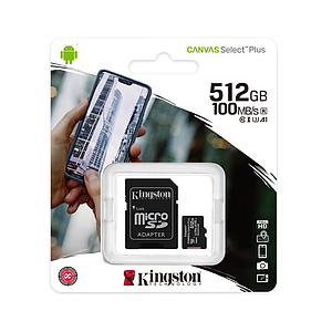 Memoria Flash MicroSDXC UHS-I U1 Canvas Select Plus, Capacidad 512GB, Gen 3, 150 MB/s, Clase 10, Incluye Adaptador, KINGSTON SDCS3/512GB