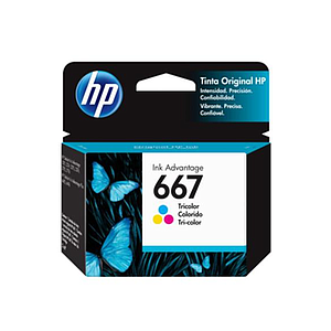Cartucho de Tinta Original 667, Tricolor, Rendimiento Aprox. 100 Páginas, HP 3YM78AL