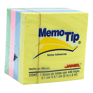 Banderitas Adhesivas (Memo Tip), Forma Mini Cubo 5.1 x 5.1cm (2"x2"), Colores Pastel, con 400 Señales, JANEL 6590202296