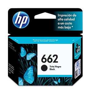 Cartucho de Tinta Original 662, Color Negro, 2 ml, Rendimiento Aprox. 120 Paginas, HP CZ103AL