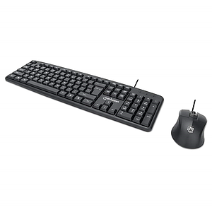 Kit de Teclado y Ratón (Mouse) Óptico, Cableados USB, 1000ppp, Color Negro, MANHATTAN 178464
