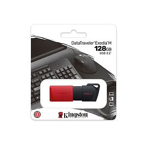 Memoria Flash USB 3.2, Exodia M, 128GB, Color Negro / Rojo, KINGSTON DTXM/128GB