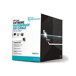 Bobina de Cable 100% Cobre Solido 23 AWG, Caja con 305 Metros Lineales, Categoría 6 (CAT 6), Para Instalaciones en Exterior, Color Blanco, LINKEDPRO PRO-CAT-6-EXT-LITEW