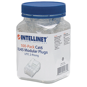 Bote C/ 100 Conectores RJ45, P/ Cable Cat 6, Uso Interior, INTELLINET 502344