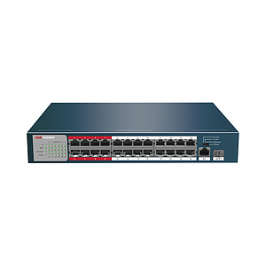 Switch PoE+, No Administrable, 24 Puertos 10/100 Mbps PoE+, 1 Puerto 10/100/1000 Mbps + 1 Puerto SFP Uplink, PoE hasta 250 Metros, 230 W, HIKVISION DS-3E0326P-E/M(B)